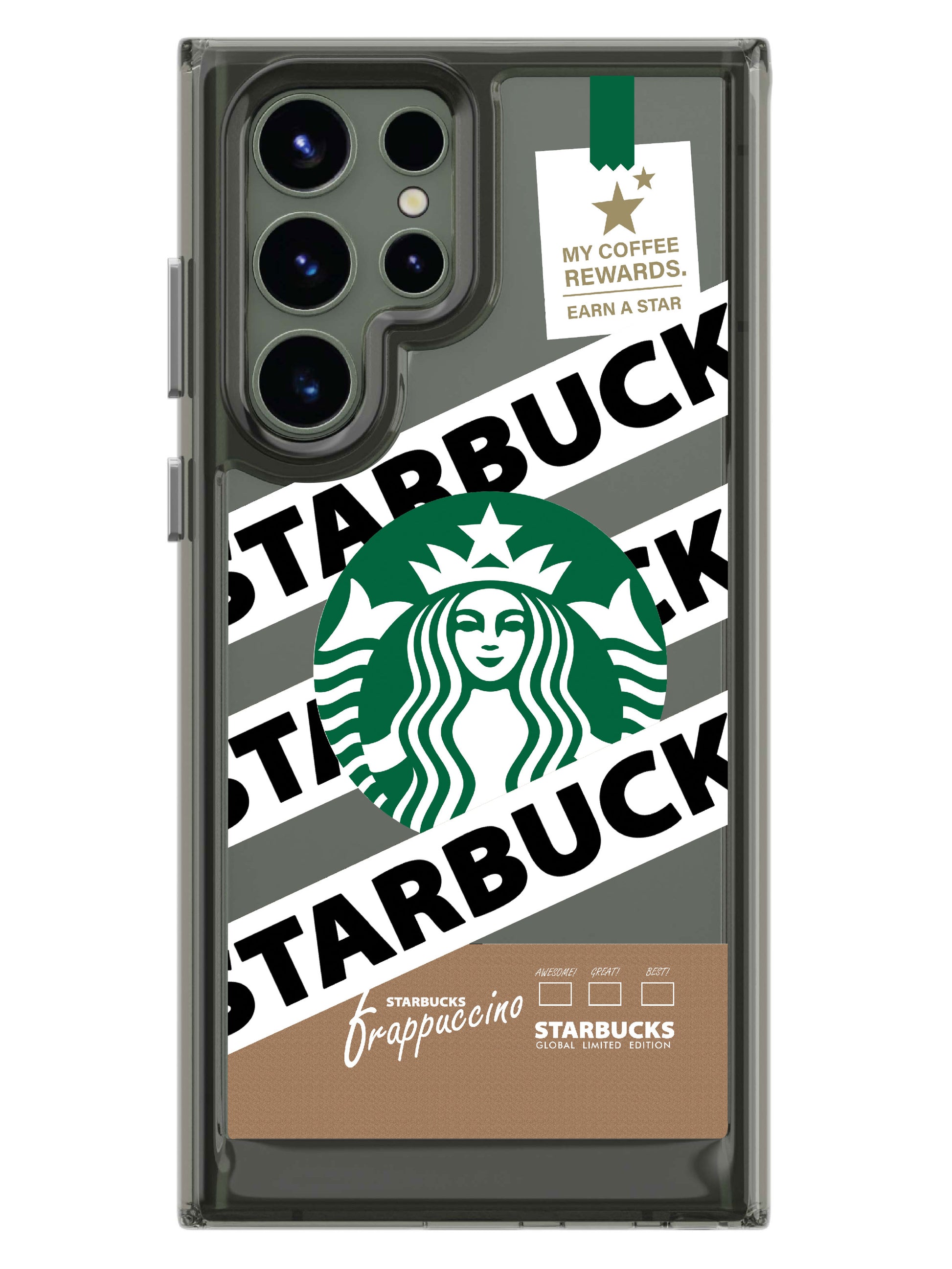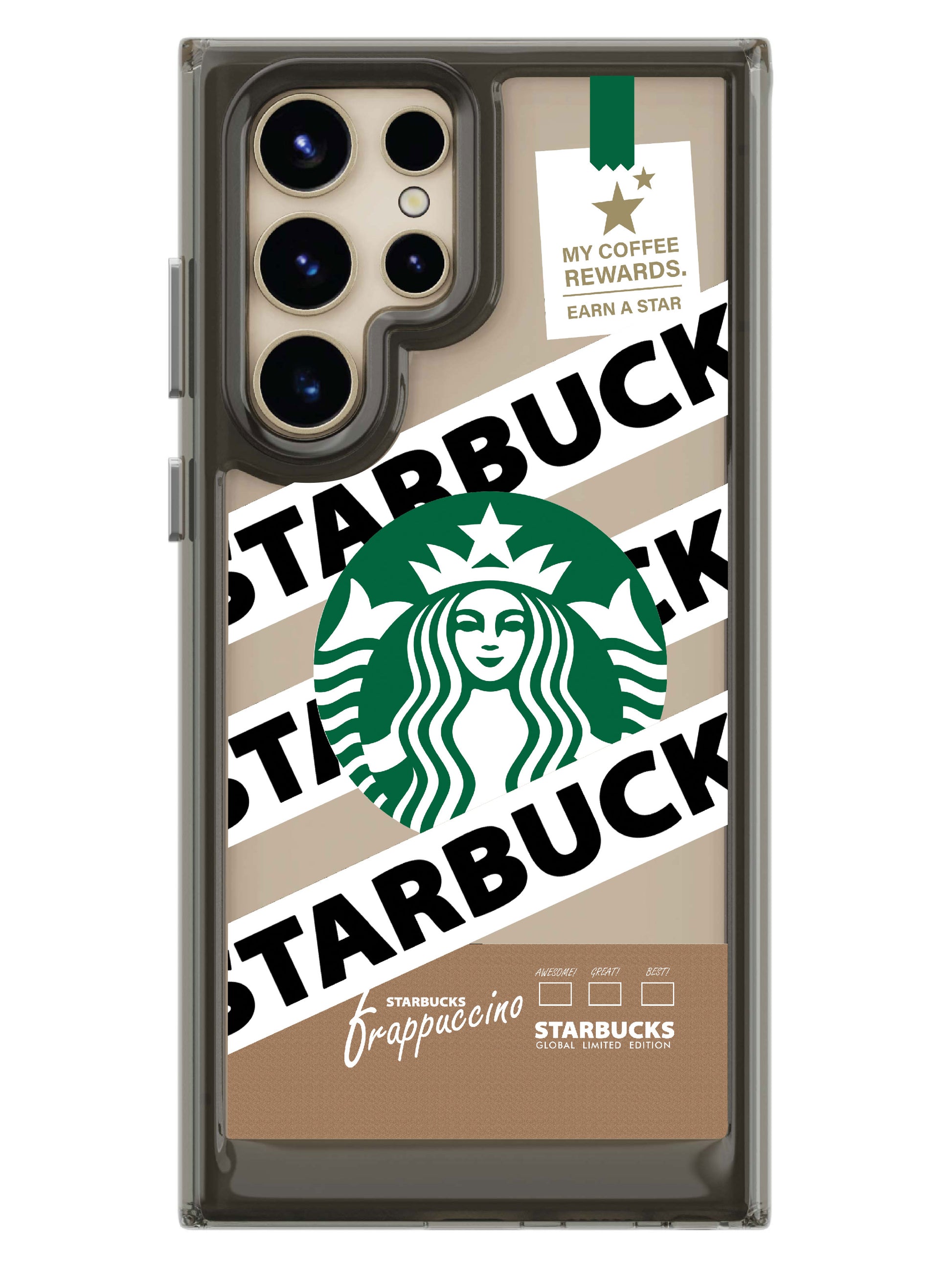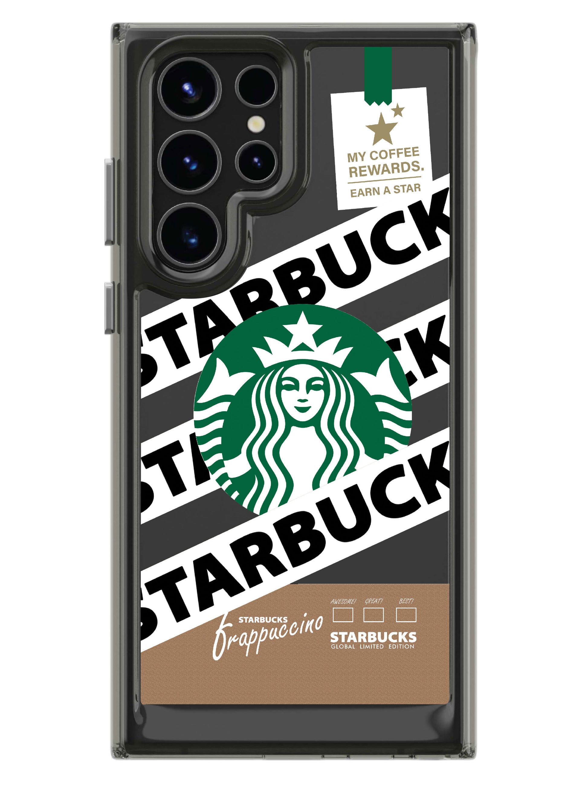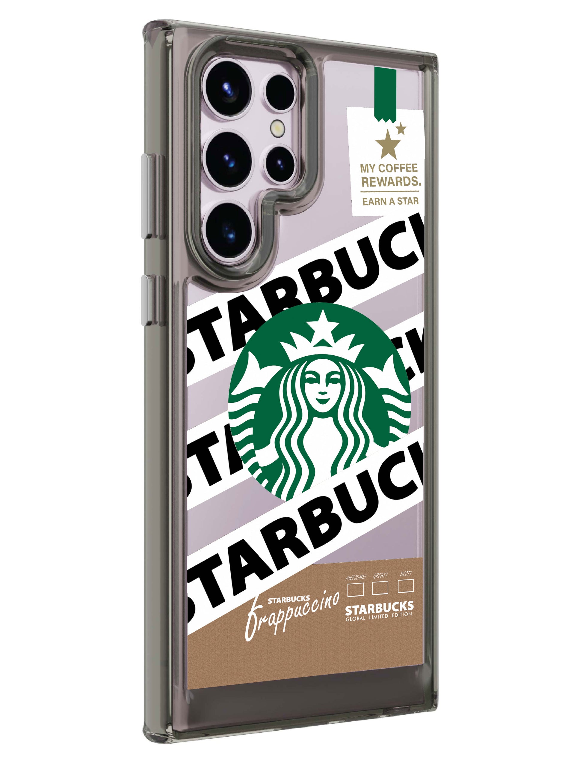 The frappaccino clear case features an eye-catching printed back cover.