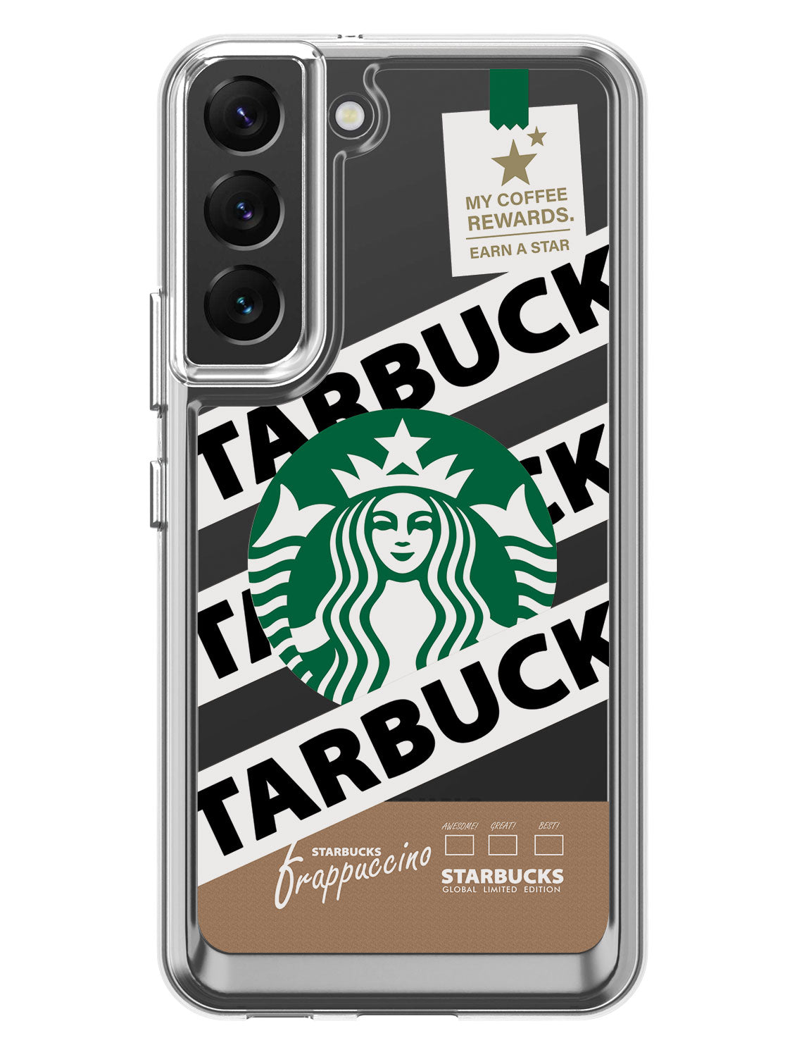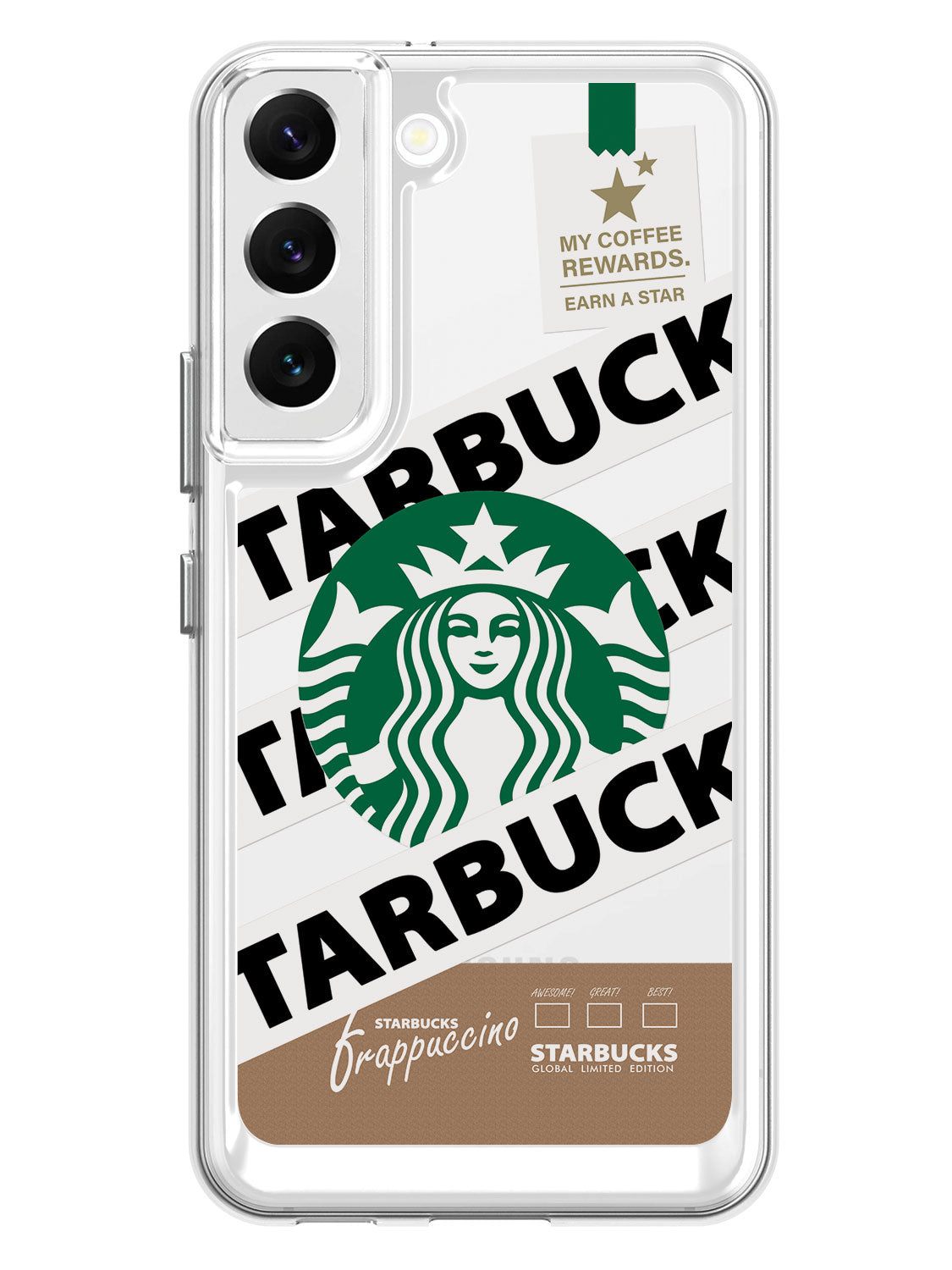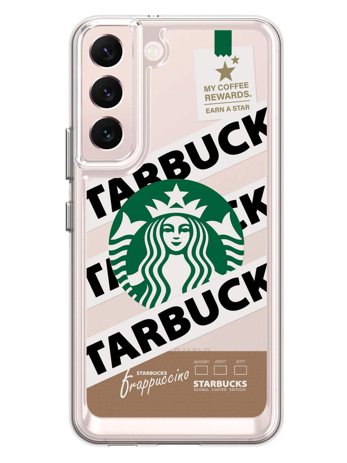 The frappaccino clear case features an eye-catching printed back cover.