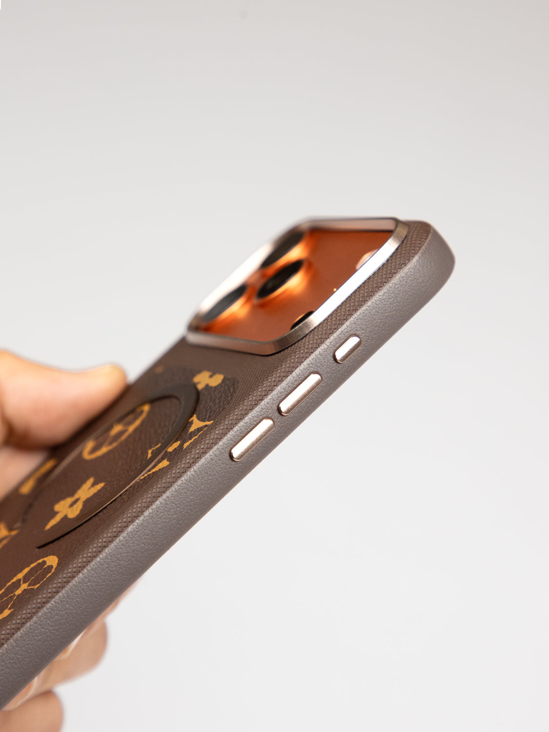 Introducing the Dual Texture Leather Pattern Case in Brown — a premium blend of style and protection. Featuring a leather-inspired patterned back with a smooth central panel and textured grip frame, it delivers a refined look with everyday durability.