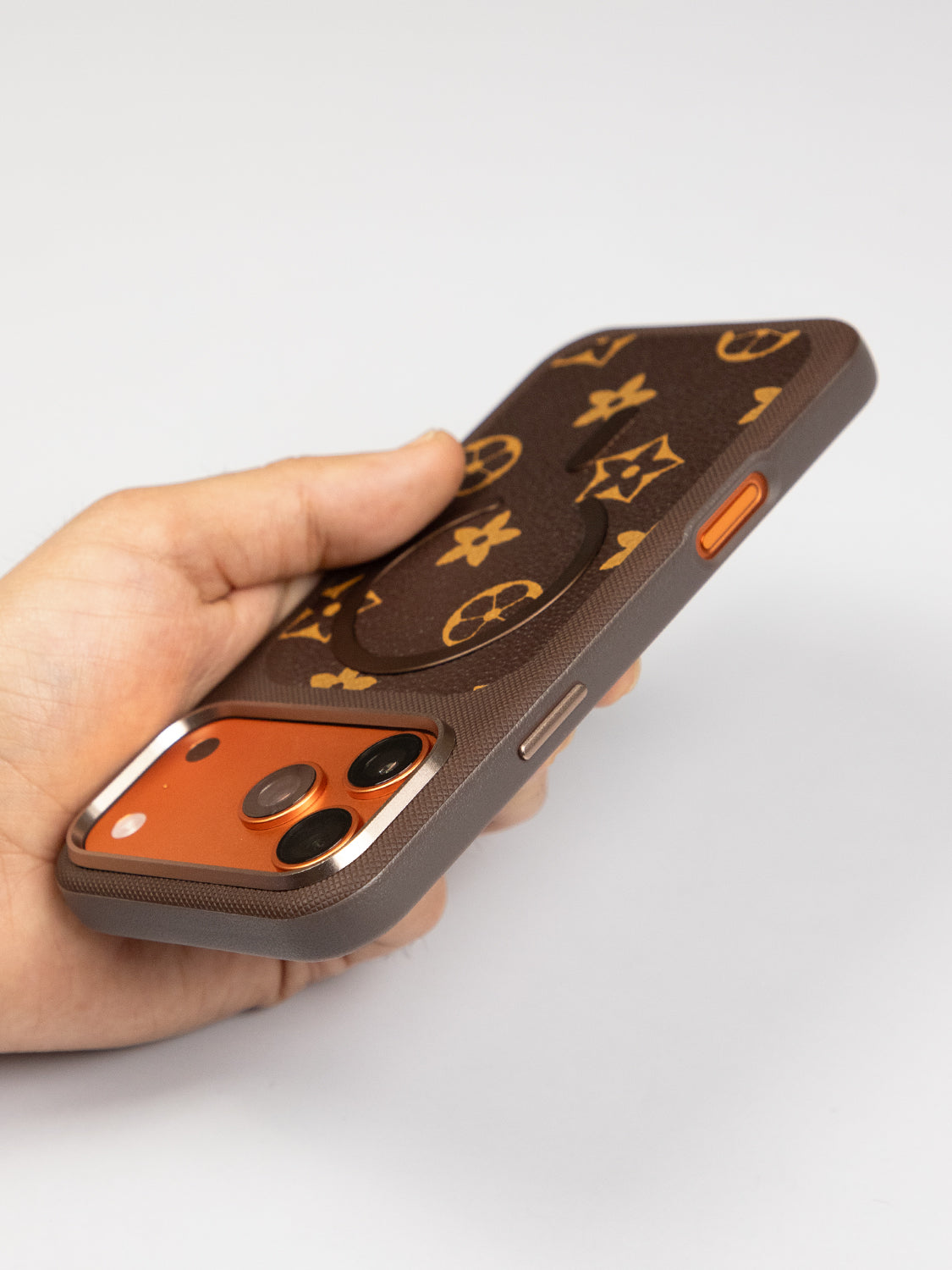 MagSafe Dual Texture Leather Pattern Case – iPhone 17 Pro Max (Orange)