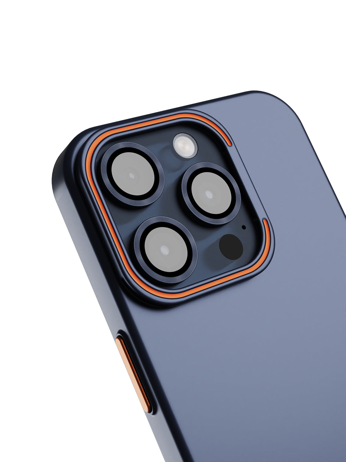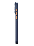 This premium hard PC case offers a sleek, durable design for your iPhone 15 Pro Max. The striking blue finish, accented with subtle hints of orange, creates a bold yet refined look. The camera ring transforms into a stand for easy, hands-free use, and matching lens protector rings provide extra camera safety while maintaining the stylish design.
