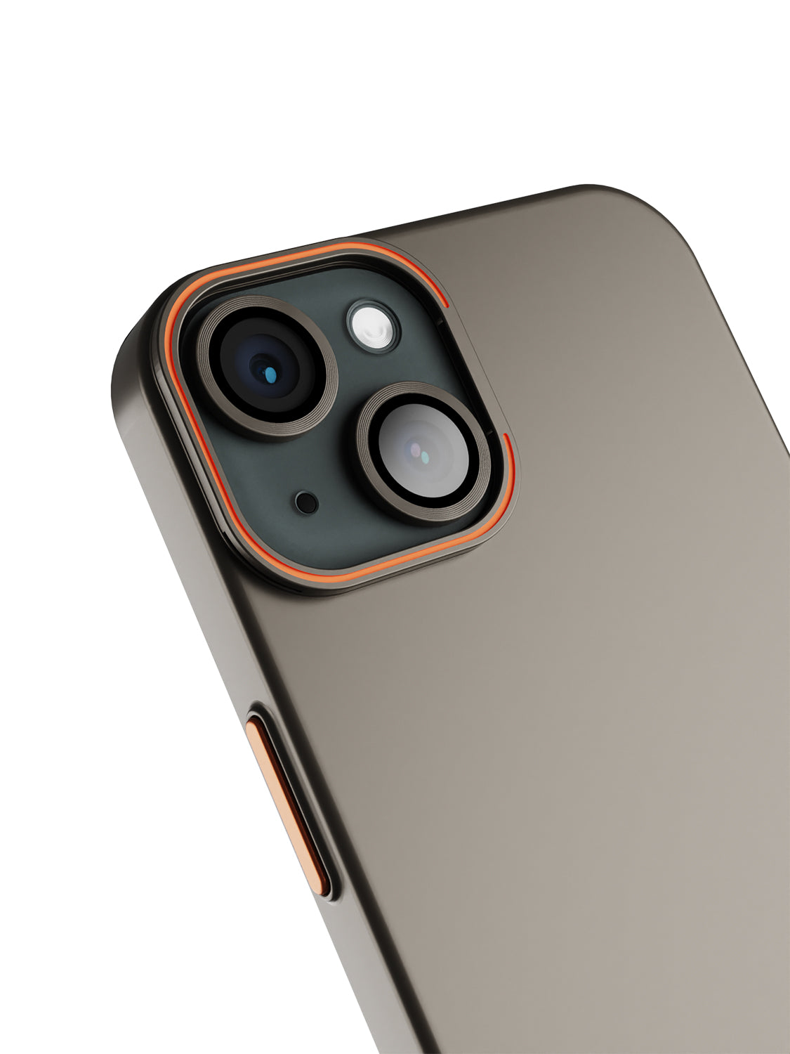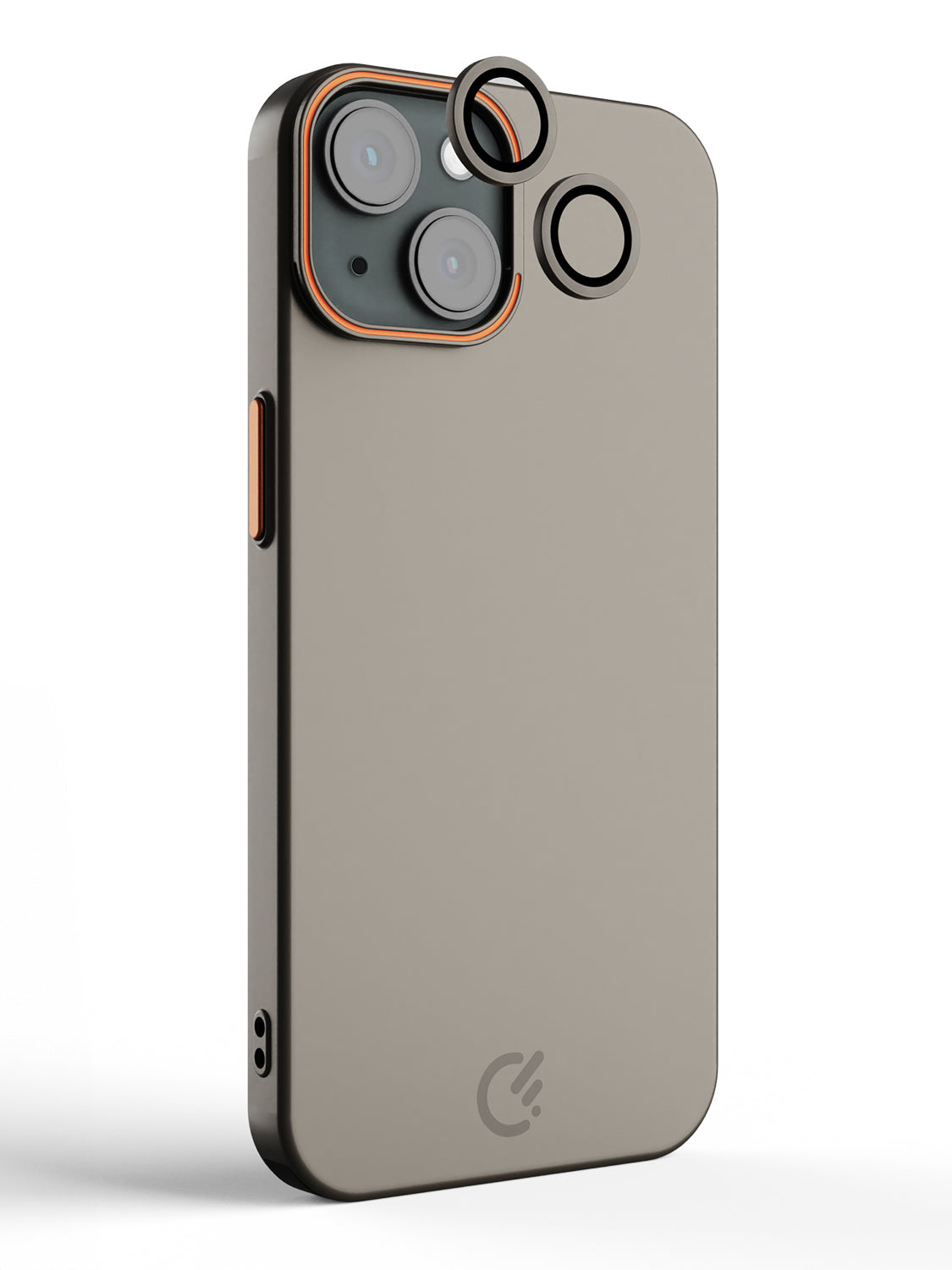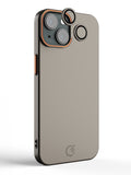 This premium hard PC case provides slim and durable protection for your iPhone 14. The elegant taupe finish, combined with subtle orange accents, adds a sophisticated and modern touch. The camera ring functions as a handy stand, while matching lens protector rings offer additional protection without compromising on design.